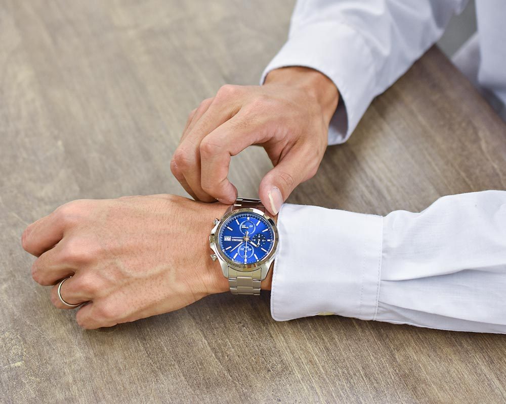 | スポーティなデザイン 鮮やかなブルーの文字盤 |