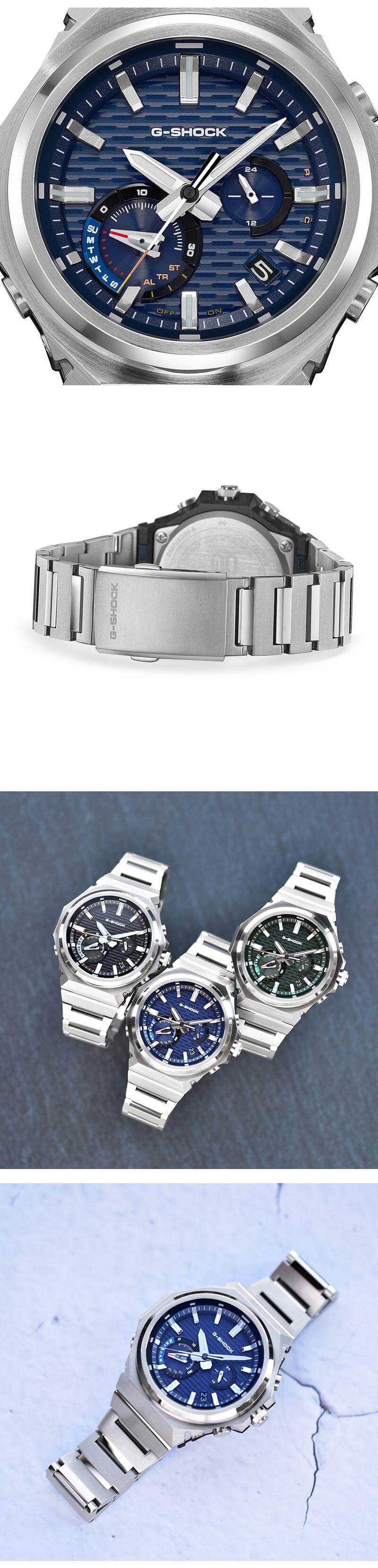 G-SHOCKが長年培ってきたタフネス構造と、機能美に根ざしたデザイン思考を受け継ぎ、それを研ぎ澄まされたミニマルな表現で再構築した新たなスタイル、SLEEK STYLE(スリークスタイル )のモデルです。ロゴを排してクリーンな印象に仕上げたベゼルは、縦のヘアライン、円系のヘアライン、ミラー 仕上げの3種で磨き分けられ、光の角度で表情を変え、豊かな質感を演出します。GST-B1000のために開発されたステンレススチール製のバンドには、ヘアライン仕上げとミラー仕上げを施しています。