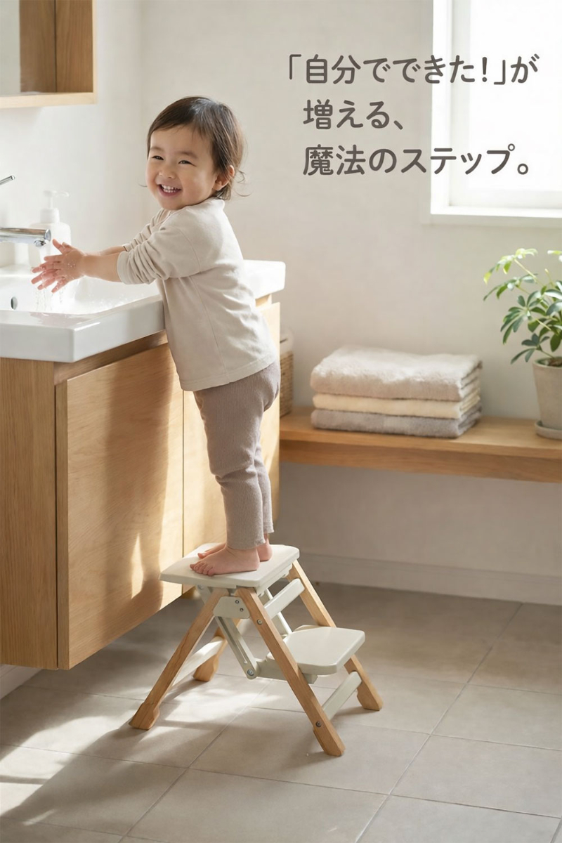 マジカルステップは、洗面所・キッチン・トイレ・リビングなど、毎日の生活シーンで大活躍するキッズステップです。