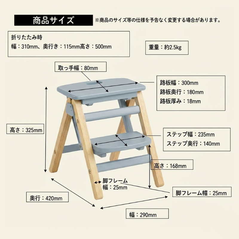 折りたたみ時:幅310mm × 奥行115mm × 高さ500mm