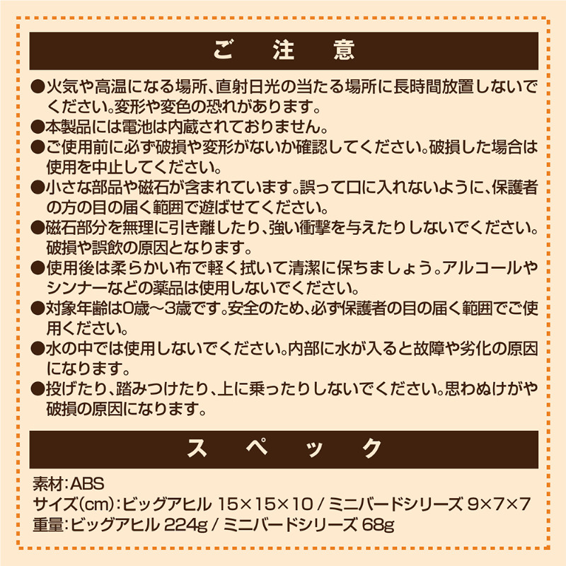 ●ミニバードシリーズ:9×7×7cm/68g(ABS素材)