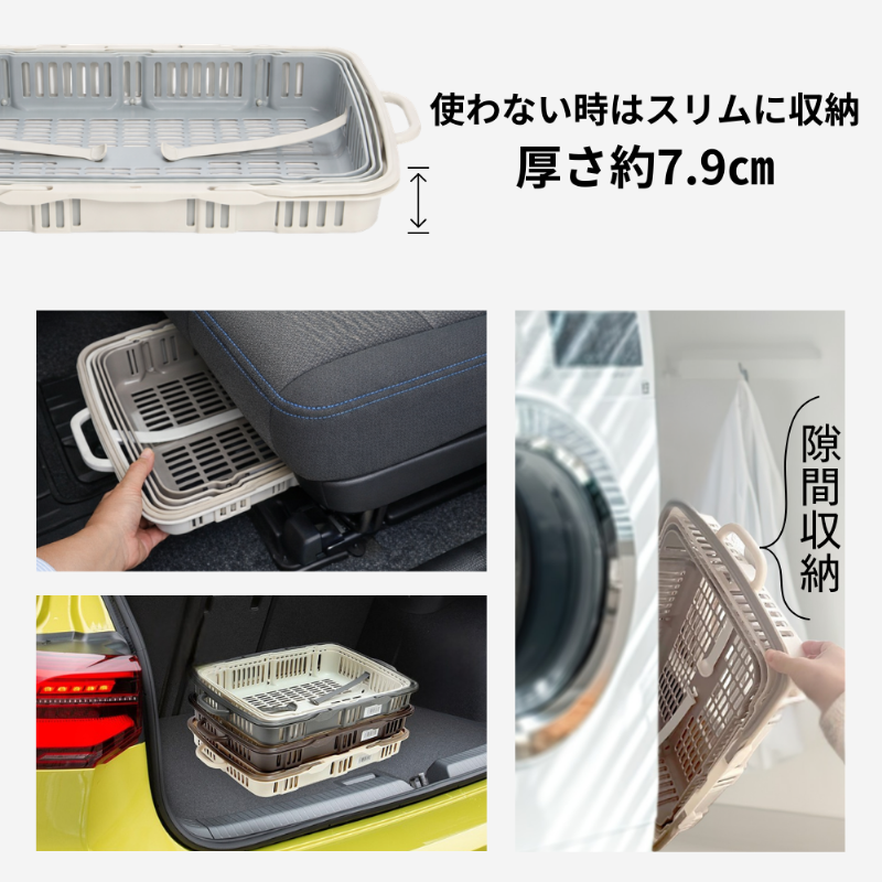 たたむとスリムになるので、玄関や車のトランクにもスッキリ収納可能。