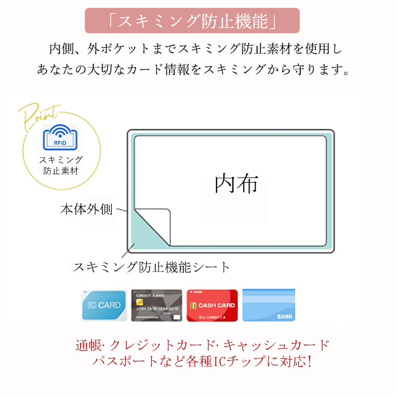 スキミング防止機能も備えているので、大切なカードの情報を外部から守ります。 色は選べる7色展開。 男女問わずご使用いただける万能アイテムです。