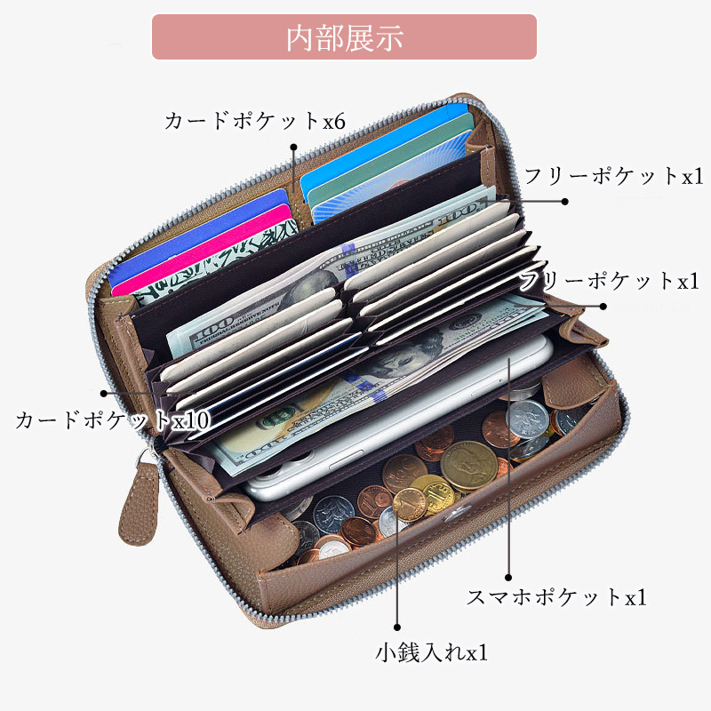 即納 長財布 レディース 小銭入れ スキミング防止 財布 コインスルー 大きく開く 多機能財布 整理 ラウンドファスナー 大容量 誕生日