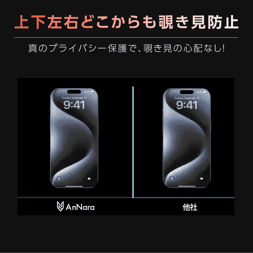 ※覗き見防止加工のため、正面からでも若干画面が暗くなります。