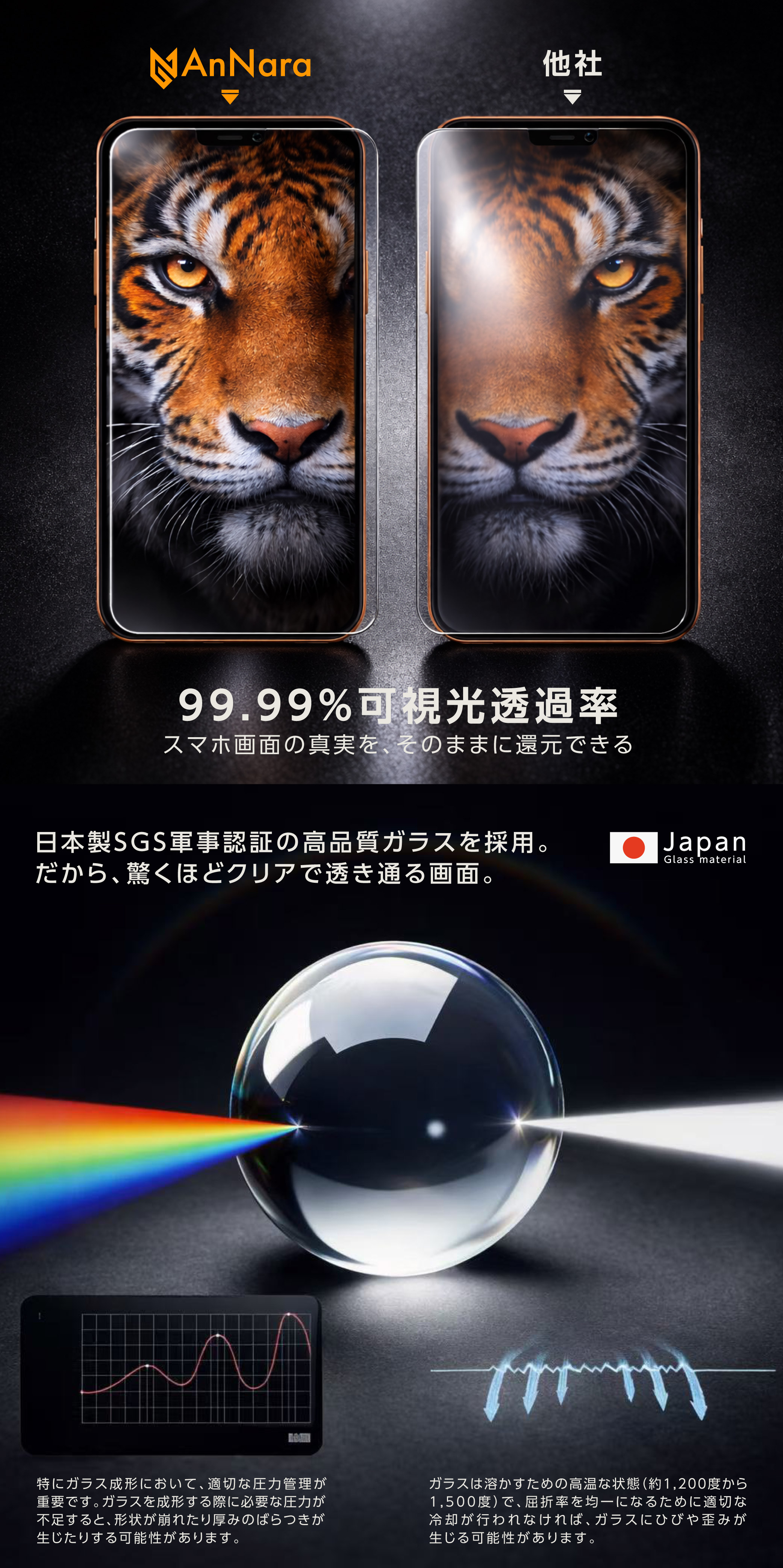 高精細で99%透明過率の高いまるでつけてない様な薄さ、しっかり保護。