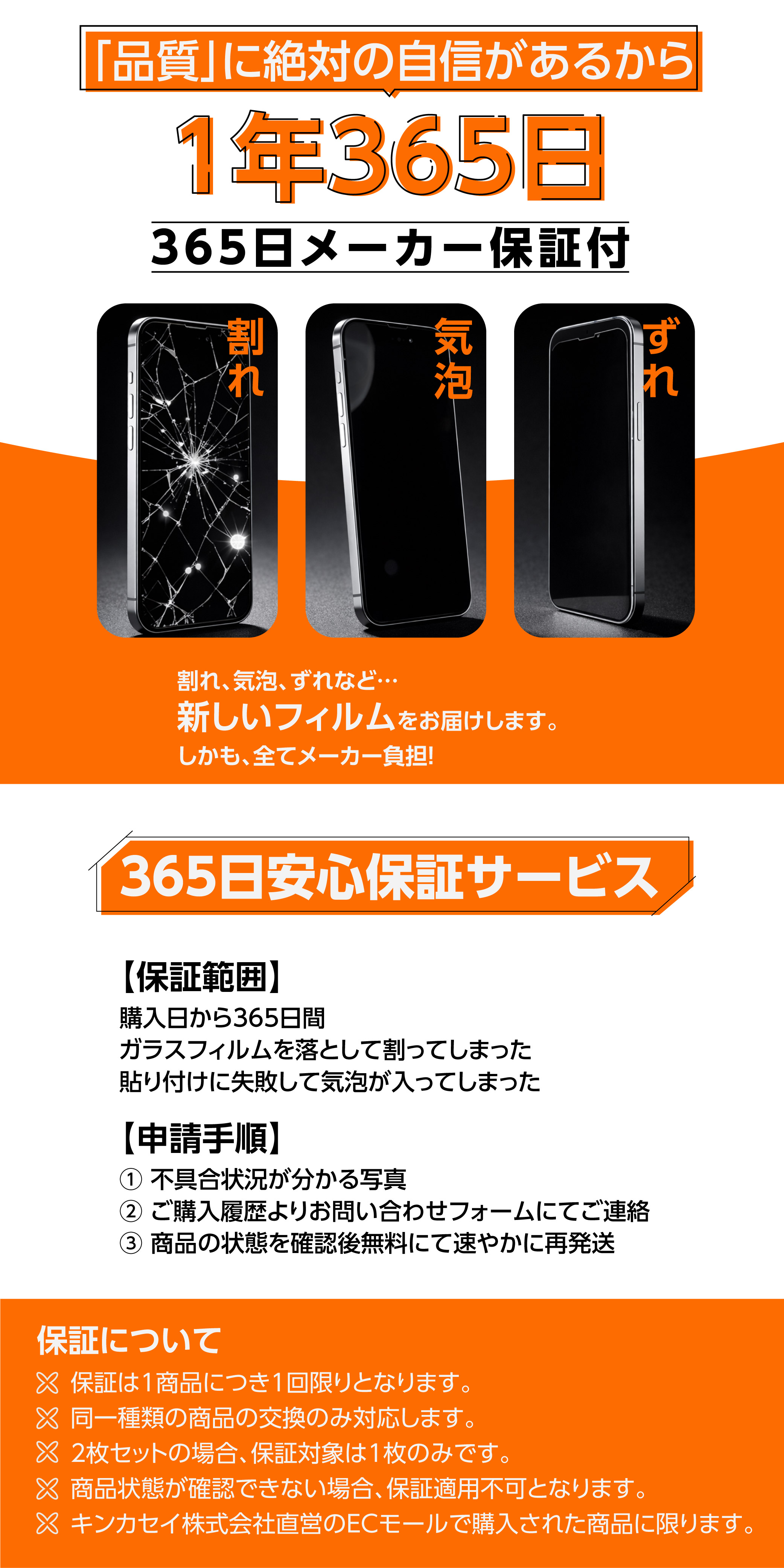 品質に絶対の自信があるから安心の365日保証!