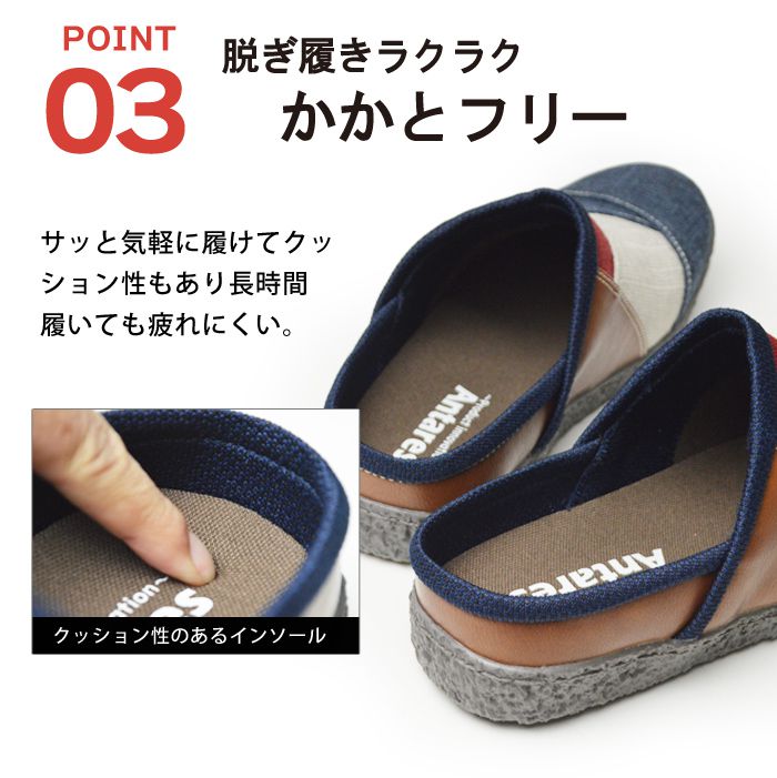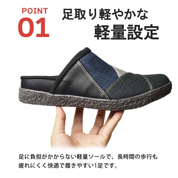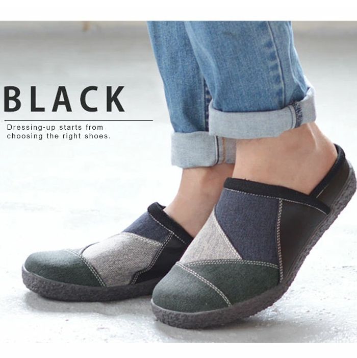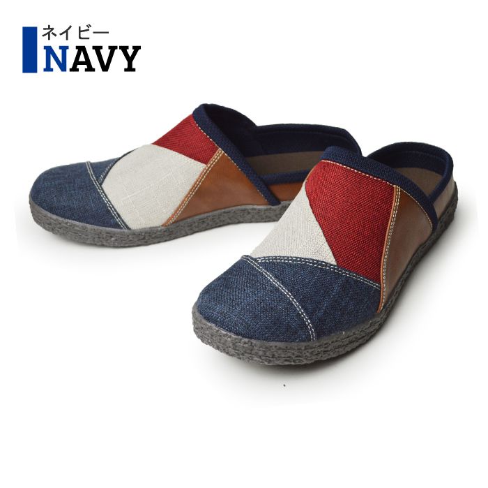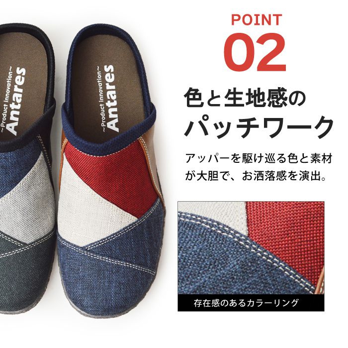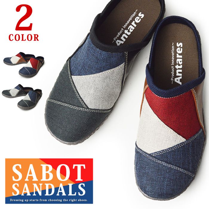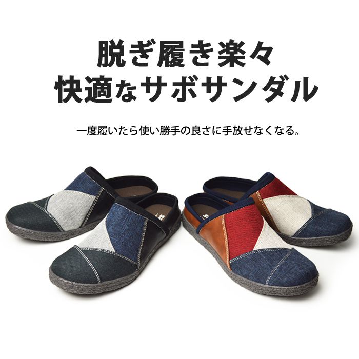 脱ぎ履きがとても楽なサボサンダルに登場。使い勝手の良さから幅広い世代から人気を博すサボサンダル。麻のような布生地は温かみのある印象を受け、折り重なったアッパー部分は色鮮やかなパッチワークが目を引く上品な仕上がりに。一足持っていると便利なアイテムです。