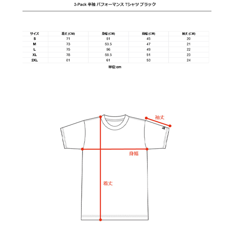 ■3-Pack Teeは独自のサイズ設定となります。お間違いのないよう、画像表示のサイズ表をご確認下さい。