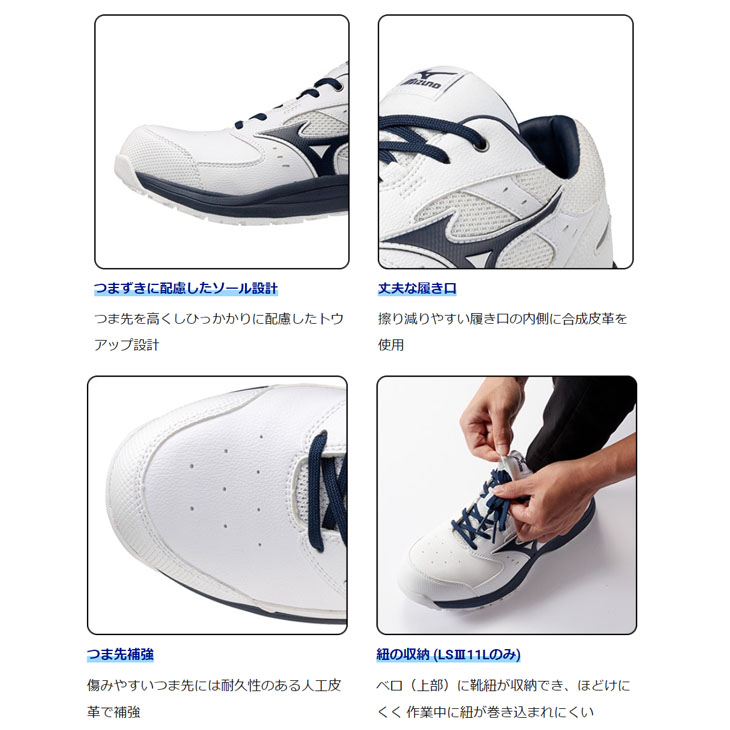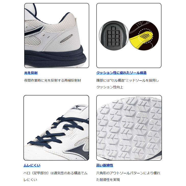 ミズノ 作業靴 安全靴 メンズ 3本ベルト 3E相当 ワーキングシューズ mizuno オールマイティLS3 22L 硬質樹脂先芯 ローカット 軽量 クッション性 /F1GA2601