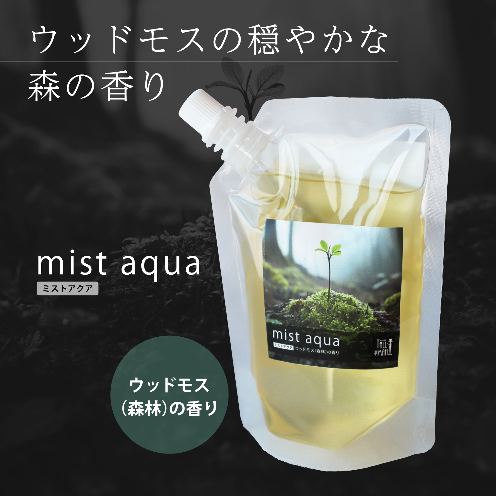 ウッドモス(森林)の香り…霧に包まれた深い森を彷彿とさせるアロマ。ウッドモスの深い香りが穏やかでやすらぎのあるリラックス空間をつくります。