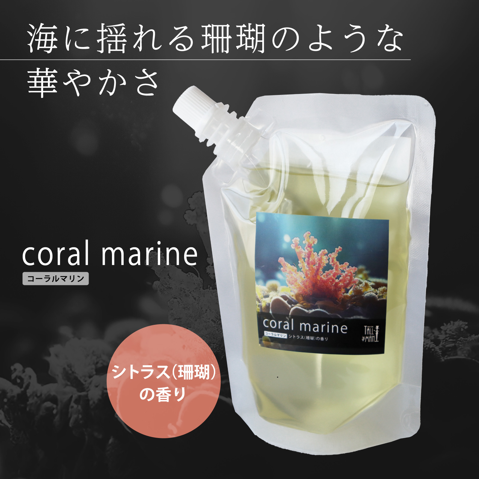 シトラスの香り…海に揺れる珊瑚とその美しさをイメージした心満たされるアロマ。華やかな香りがやさしく包み込み、癒しの空間を彩ります。