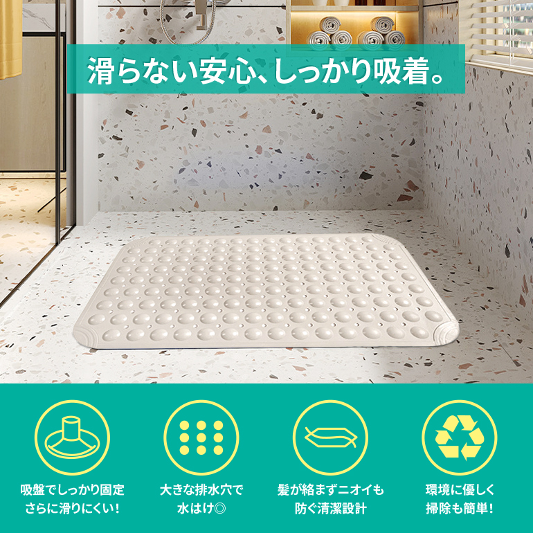 滑り止めバスマット 介護 介護用 吸盤付き 転倒防止 お風呂マット 風呂場・浴槽対応 柔らか素材 耐久性抜群 お手入れ簡単 お風呂 妊婦 赤ちゃん 子ども