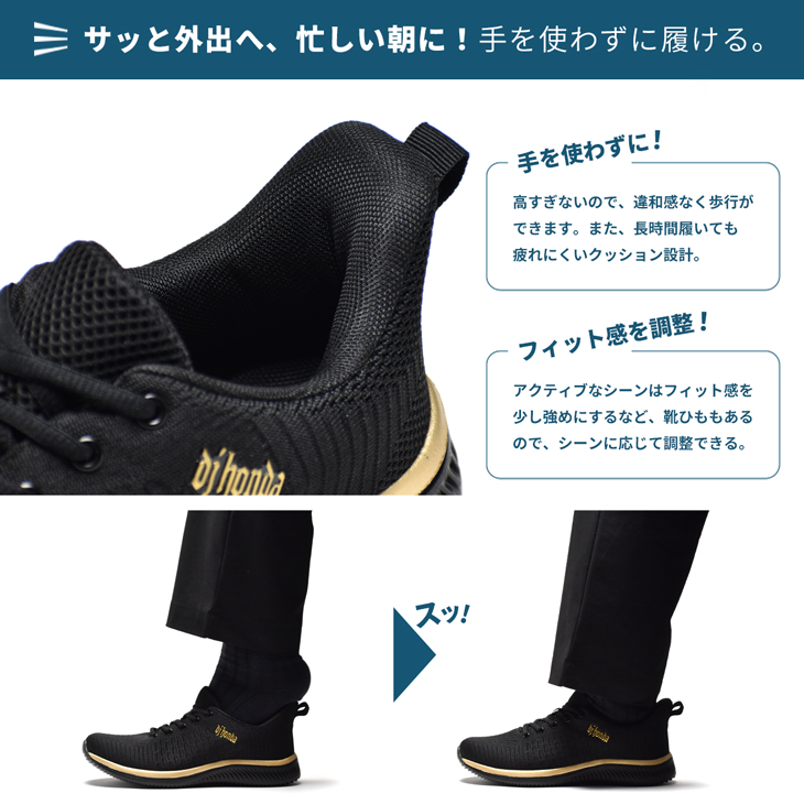 スニーカー メンズ 手を使わずに履ける スリッポン 靴 軽量 カジュアル DJHONDA