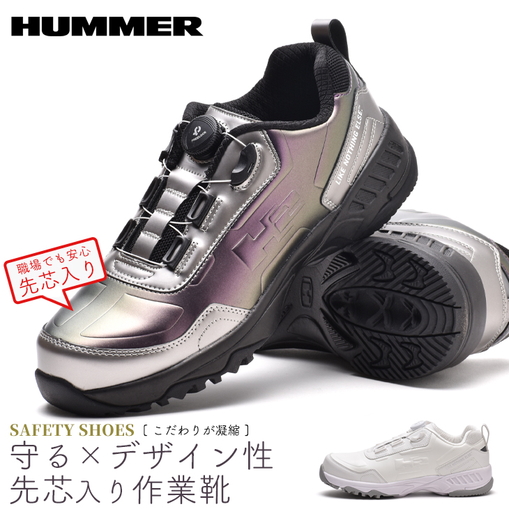 安全靴 メンズ 作業用 スニーカー シューズ ダイヤル式 ハマー 靴 先芯入り 作業靴 衝撃吸収 HUMMER