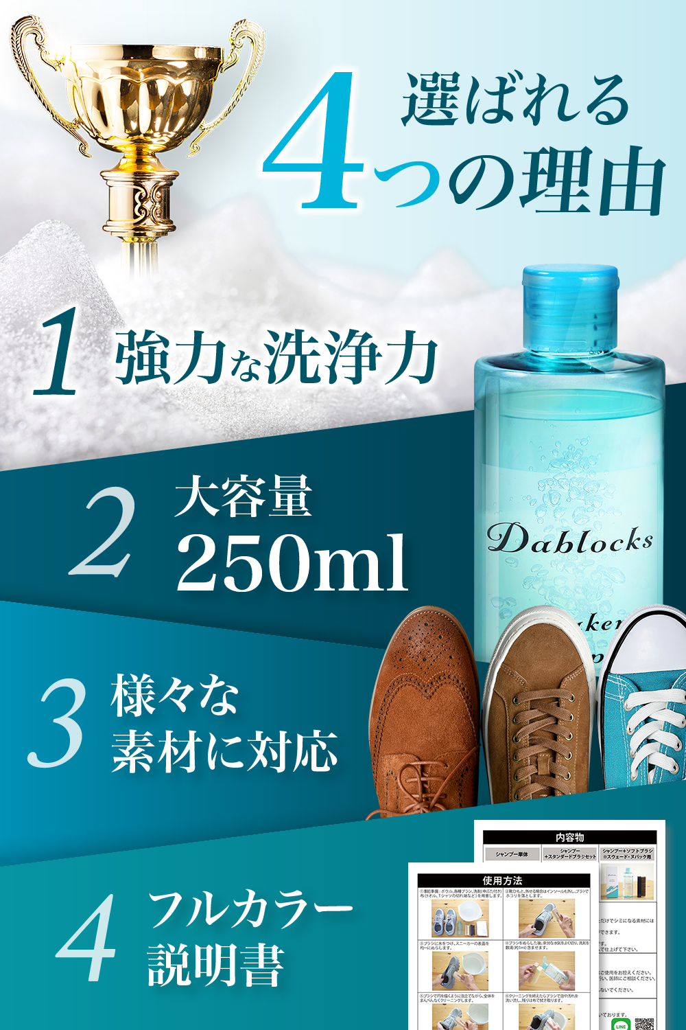 ・フルカラー手順書つきでスニーカーケアが初めての方でもお手入れできます。