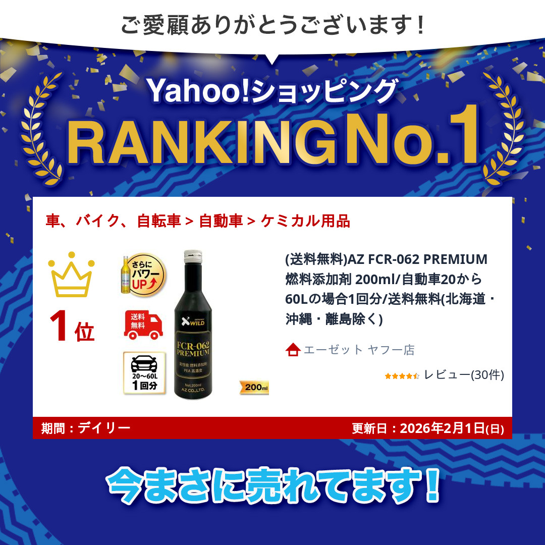 (送料無料)AZ FCR-062 PREMIUM 燃料添加剤 200ml/自動車20から60Lの場合1回分/送料無料(北海道・沖縄・離島除く)