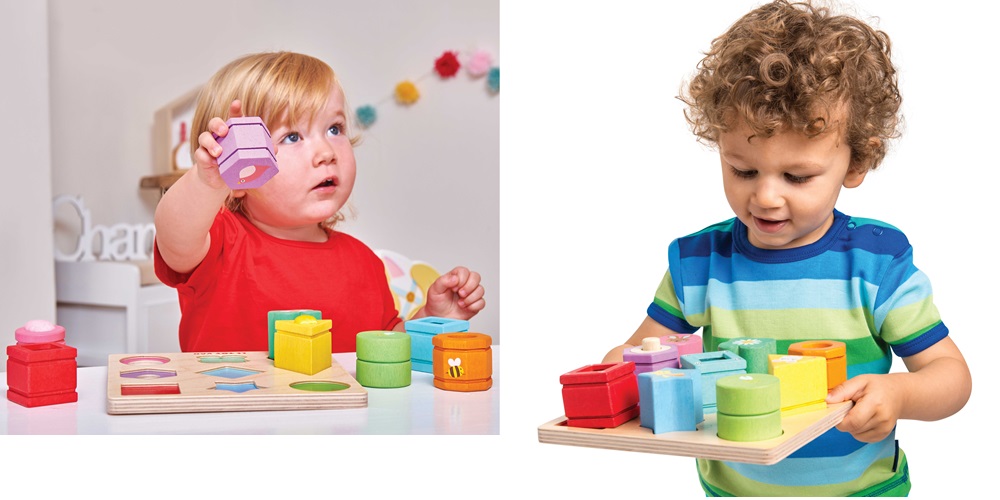 付属のトレイはお片付けをしながら色や形の認識を促します。