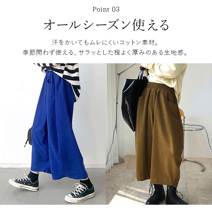 | ・ゆったり快適♪大胆なボリューム感が可愛い、バルーンパンツが新登場。 【ボリュームたっぷりのシルエット】 ・ワイドで脚の動きを邪魔しない楽ちんシルエット。様々なトップスとも相性が良く、コーディネートの幅が広がる◎ 【脚のラインを気にせず穿ける】 ・脚のラインを気にせず穿けるこだわりのデザイン。下にタイツを穿いても体のラインを拾いにくく、気になる部分もカバーできちゃう! 【ストレスフリーな履き心地】 ・締め付け感のないウエストゴム仕様で、動き回っても座りっぱなしでもラクチン!股上が深く、安定した履き心地をプラス。 【便利な4つのポケット付き】 ・前後左右に配置されたポケットには、スマホや薄手のハンカチなどをIN。 【オールシーズン使えるアイテム】 ・汗をかいてもムレにくいコットン素材。程よく厚みのある生地感ながらサラッとしており、オールシーズン使えるアイテム☆ 【着回し力バツグンの一枚】 ・カットソーやパーカーと合わせてカジュアルにはもちろん、上品なブラウスとのミックススタイルも♪リラックスタイムやお出かけにもぴったりな1枚で快適な1日を過ごせそう♪ |