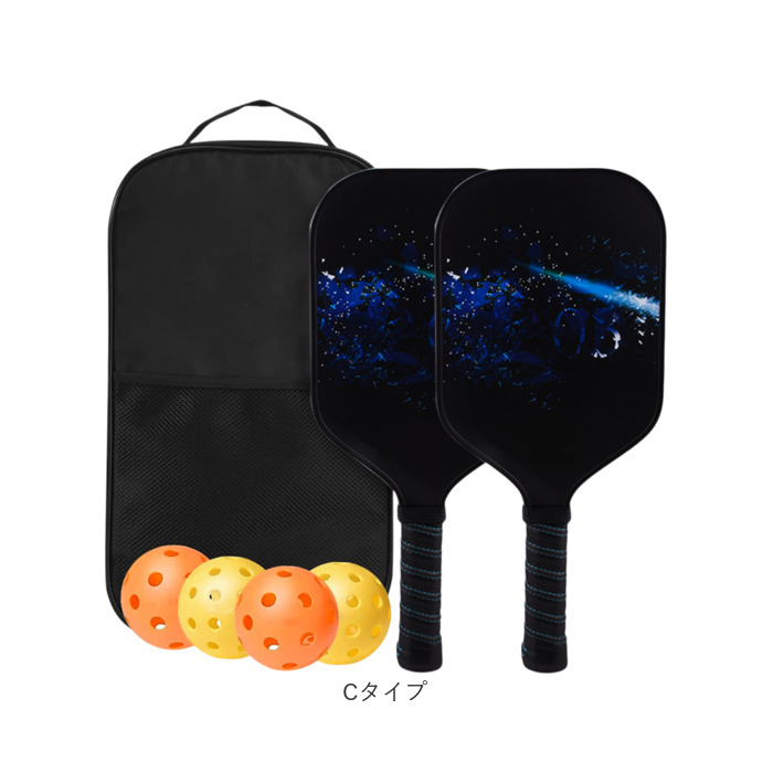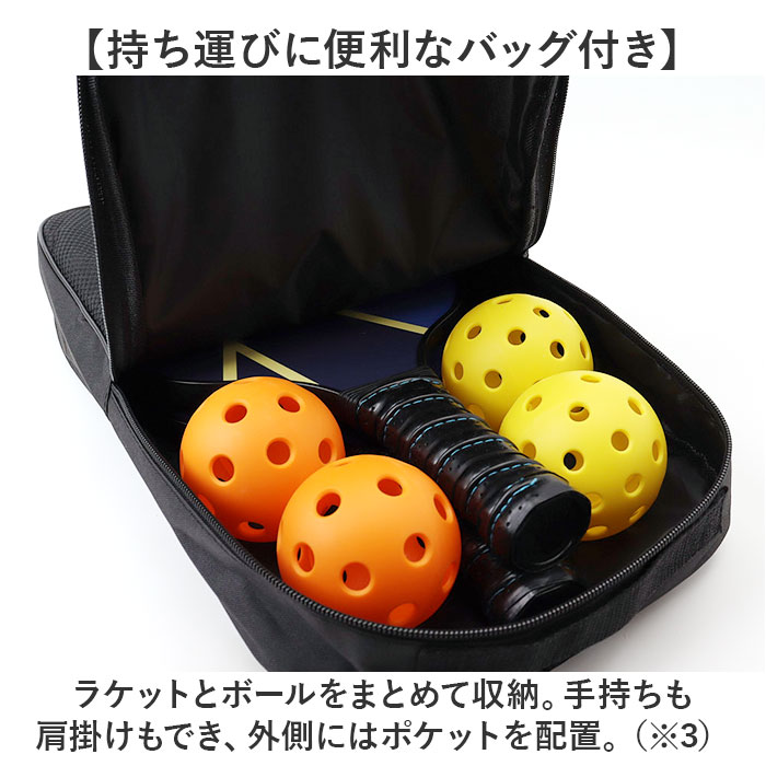 ピックルボール パドルラケット 通販 パドル ラケット ボール 4個付き セット 収納バッグ付き 軽量 丈夫 耐久性 グラスファイバー表面 グリップハンドル