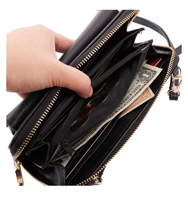 お財布ポシェット ママ 通販 お財布バッグ ショルダー お財布 ショルダーバッグ スマホ レディース お財布ショルダー 大容量 黒 ブラック シンプル おしゃれ 大人 かわいい 長財布 ポシェット ミニショルダー 斜め掛け 斜めがけ ななめ掛け ラウンドファスナー 小銭入れあり ロングウォレット フェイクレザー 合皮 外ポケット 2way [* ☆ladies *]