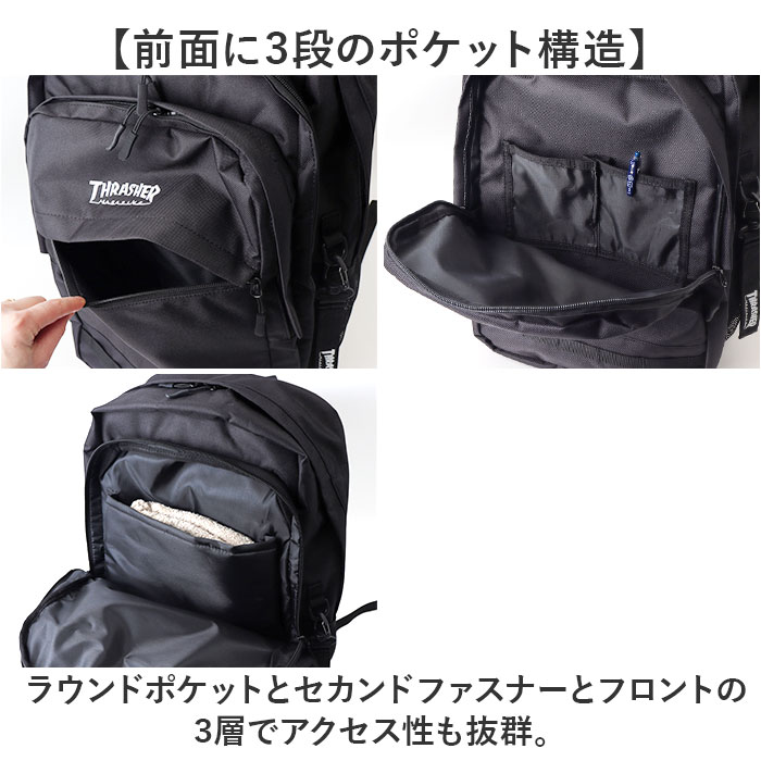 スラッシャー リュック THRASHER VJTH-0014 通販 バックパック リュックサック デイパック ブランド 通学リュック A4 通学バッグ 黒 ブラック スラッシャー