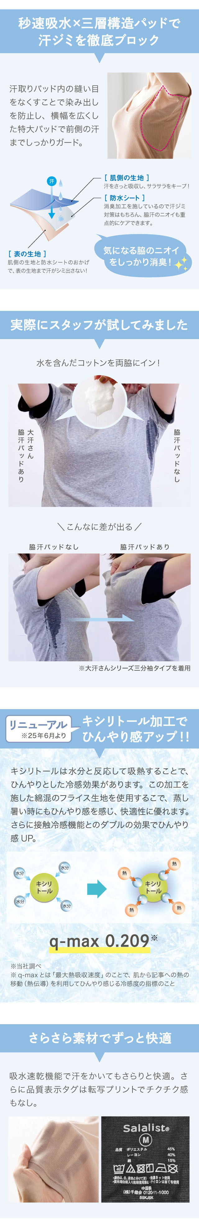 \大きな三層汗取りパッド付き/大汗ブロック機能はそのままに、キシリトール加工で冷たさUP!
