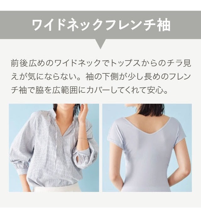 インナー 汗取りインナー レディース 肌着 レディースインナー 汗パッド レディース肌着 サラリスト 綿混 ワイドネック フレンチ袖 大汗さん 接触冷感 吸水速乾