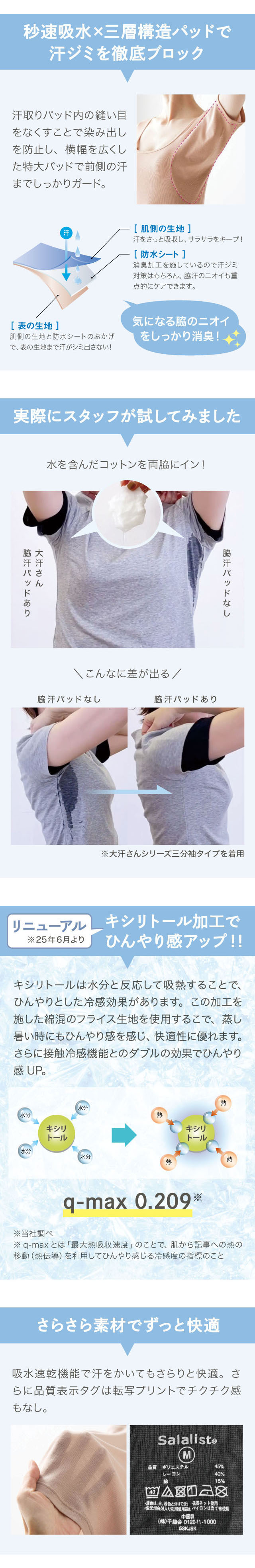 \大きな三層汗取りパッド付き/大汗ブロック機能はそのままに、キシリトール加工で冷たさUP!