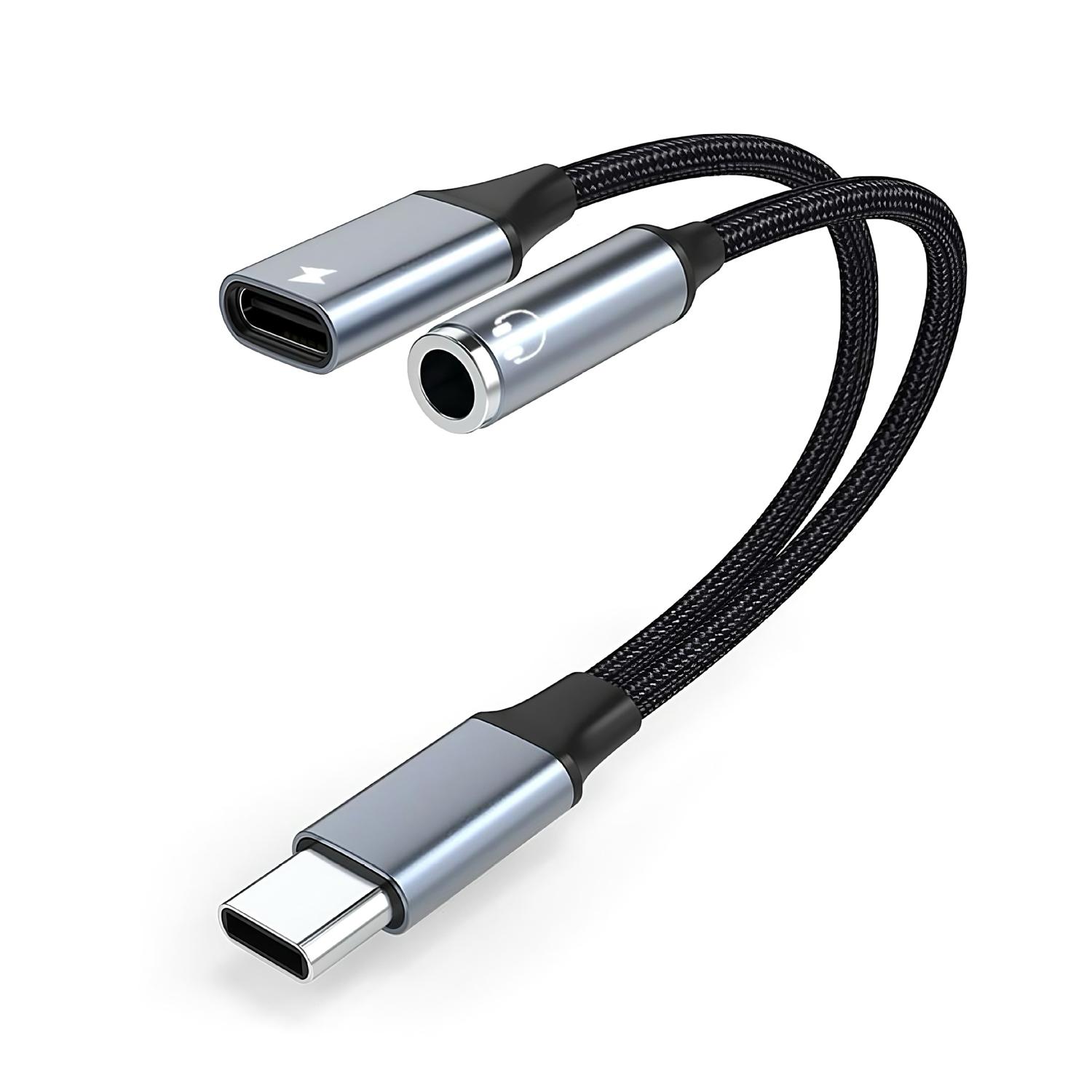 【商品説明】【Type-C二股アダプター(充電+音楽+通話)】