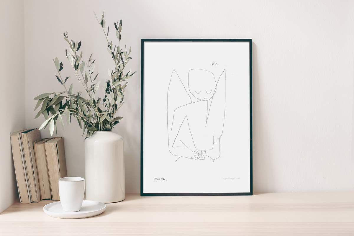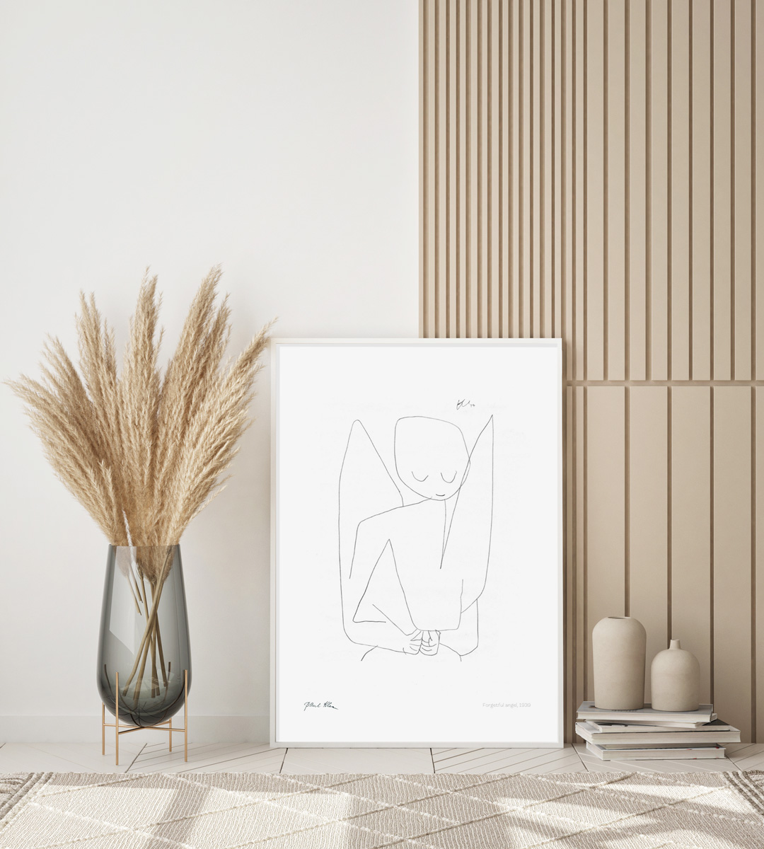 1939年に描かれた、パウル・クレーの絵画「Forgetful angel(忘れっぽい天使)」をデザインしたアートポスターです。