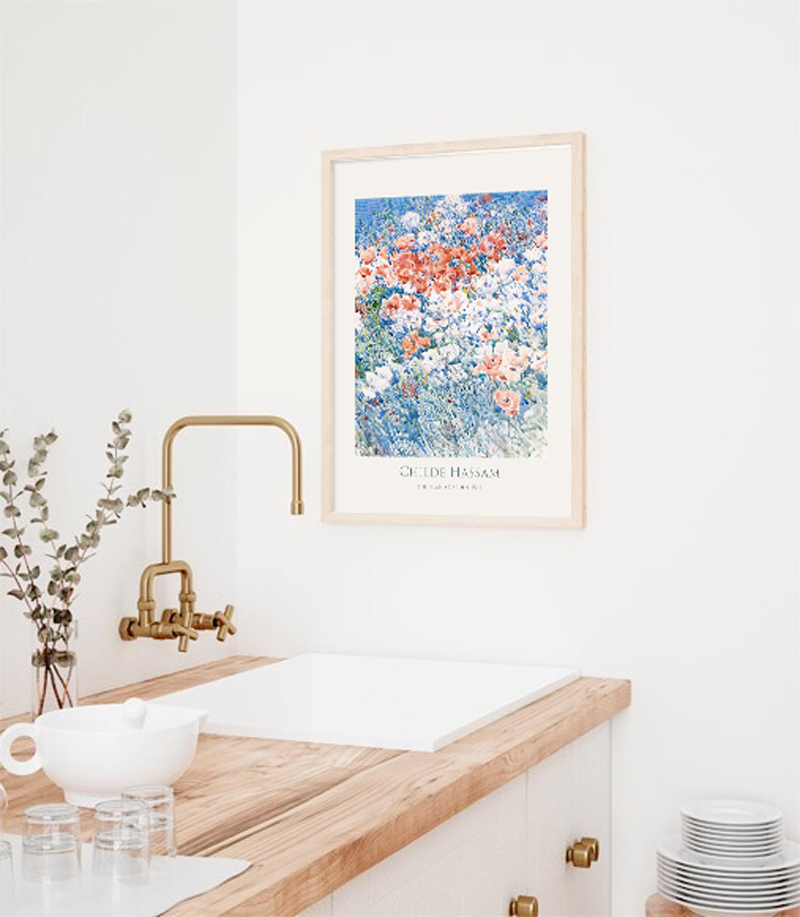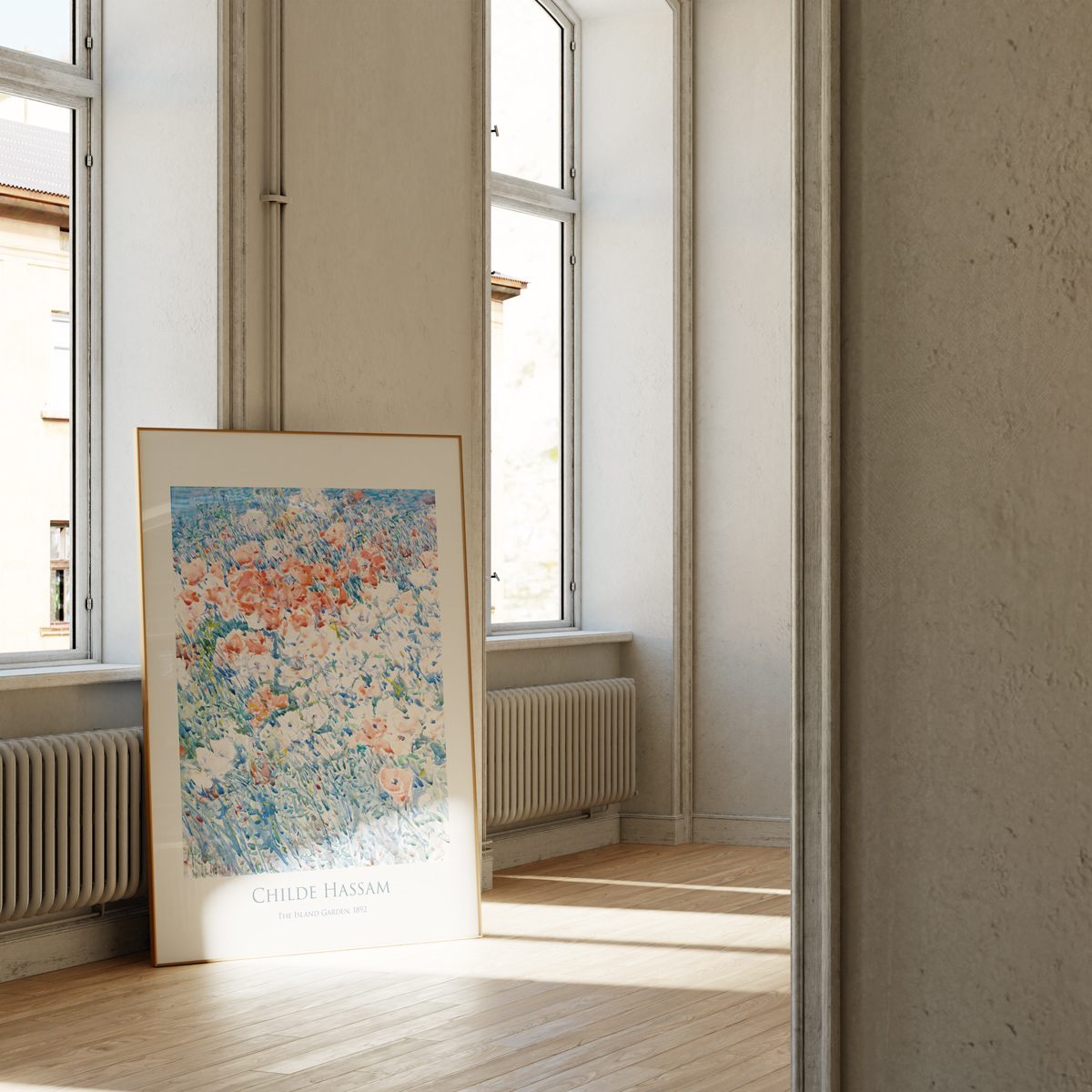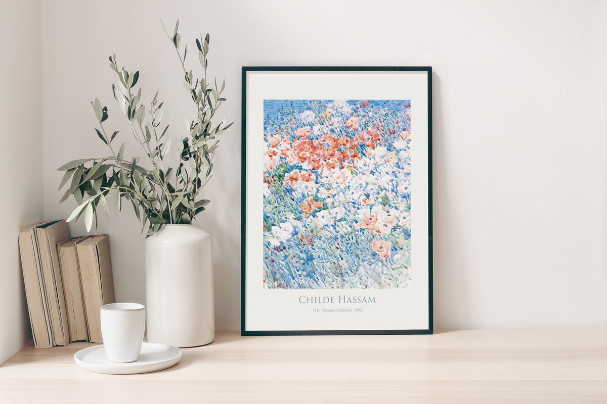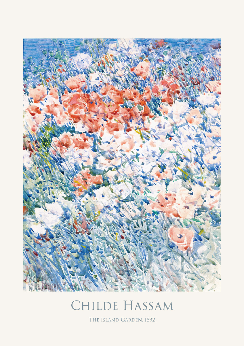 チャイルド・ハッサムの絵画「The Island Garden (1892)」をデザインしたアートポスターです。