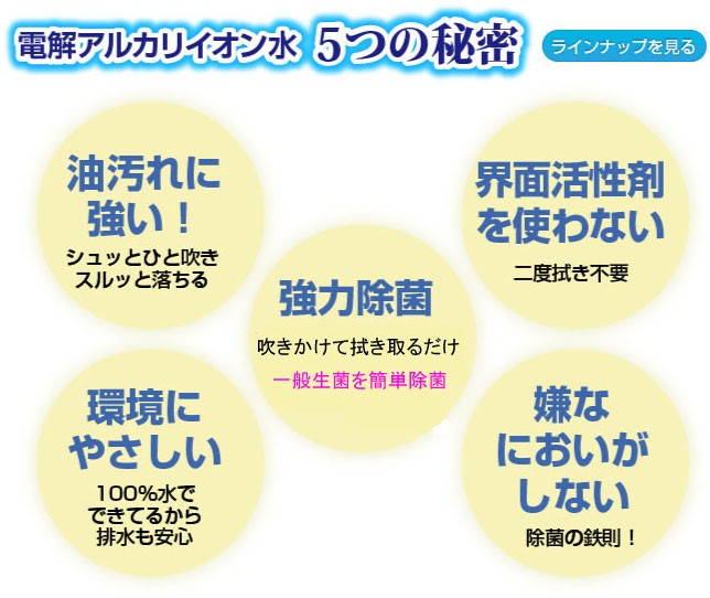 赤ちゃん ペット 安心 安全 ハンドスプレー 驚異の洗浄力 水 除菌 強力洗浄 油汚れ 無臭 アルカリイオン ベタベタ 掃除 万能