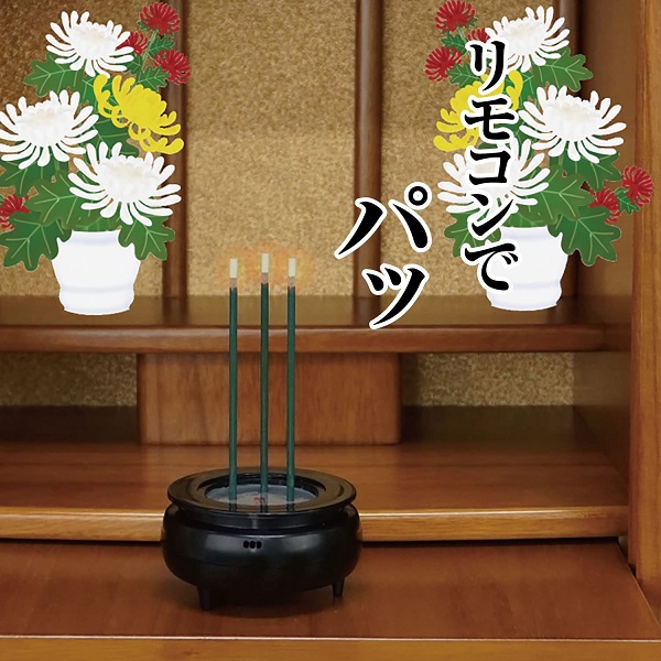 在庫あり リモコン式安心LEDお線香ミニIII FIN-1025 ファイン 線香 LED 火を使わない 煙が出ない ニオイが出ない コンパクト 安心 安全 仏壇 神棚 お盆 ミニ