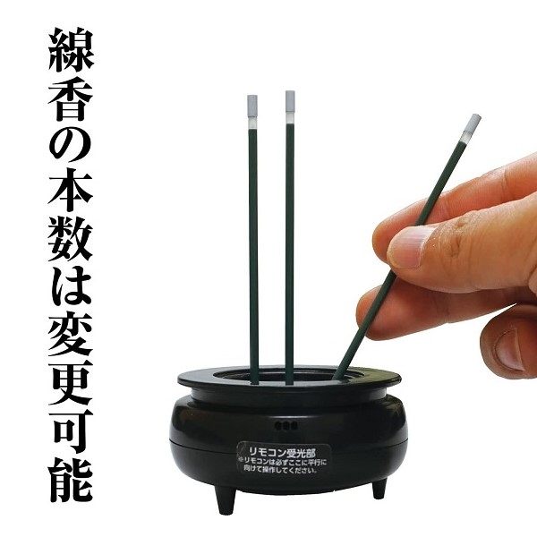 | サイズ・容量 | 本体サイズ(約):6.9×12cm 個装サイズ(約):10.5×21.5×7.5cm リモコン×1 線香部穴用栓×6 |