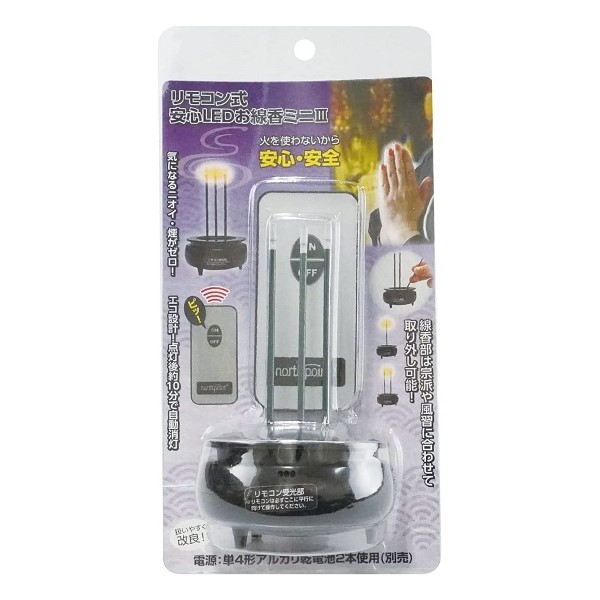 リモコン式安心LEDお線香ミニIII FIN-1025 ファイン 線香 LED 火を使わない 煙が出ない ニオイが出ない コンパクト 安心 安全 仏壇 神棚 お盆 ミニサイズ 高齢 こども ペット 新生活 ご高齢 小さな お子様 ペット