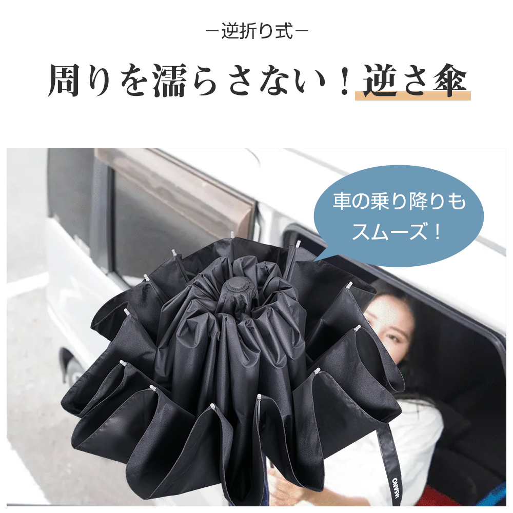 頑丈なアルミニウム合金製親骨製を採用し,風に強い設計で、万が一逆さに反しても元に戻ります。