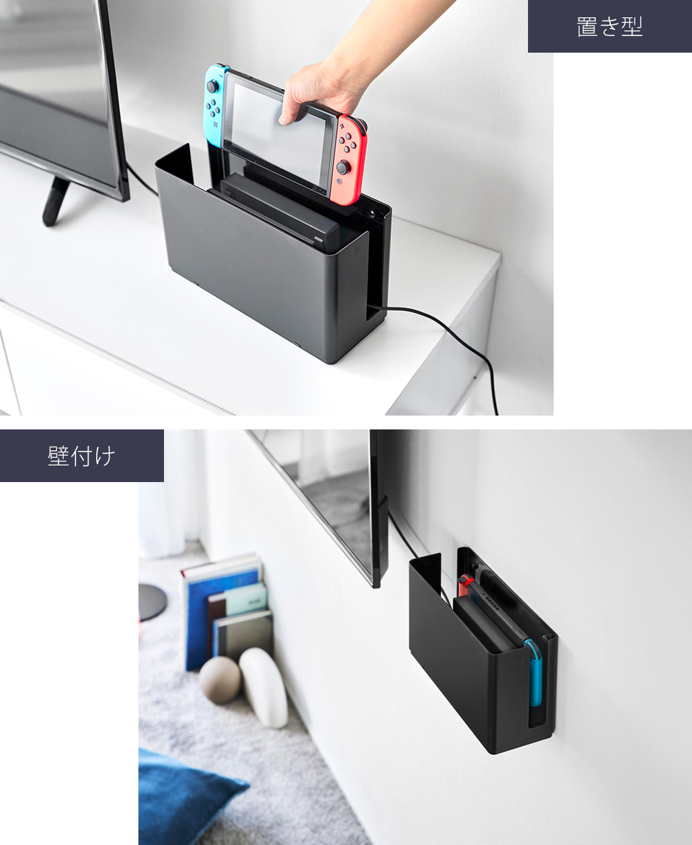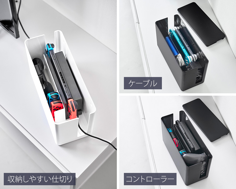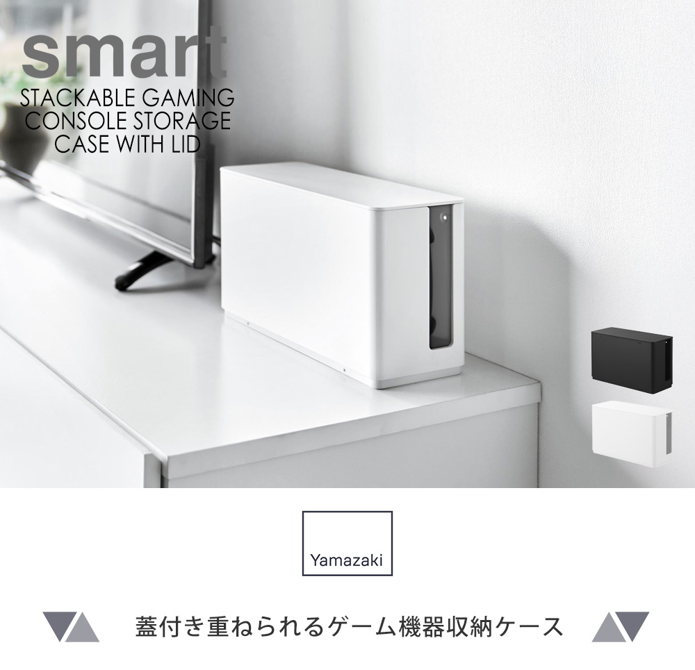 ゲーム機収納ケース ゲーム機器 収納ボックス 蓋付きケース 重ねられる収納 壁掛け収納 コントローラー収納 小型ゲーム機収納 仕切り付きケース 充電しながら収納 ゲーミング整理収納 配線すっきり収納 省スペース収納 ホコリ防止ケース スタッキング収納 多機能収納ケース コンパクト収納 石こうボード対応 ホワイト ブラック ヤマザキ実業 ヤマジツ