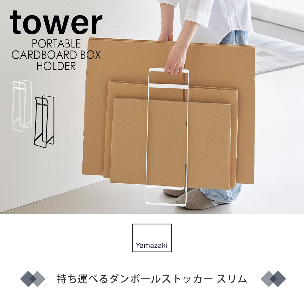 山崎実業 公式 タワー 持ち運べるダンボールストッカー スリム tower 段ボール 収納 置き 移動 持ち運び 整理 ダンボール立て 10589 10590