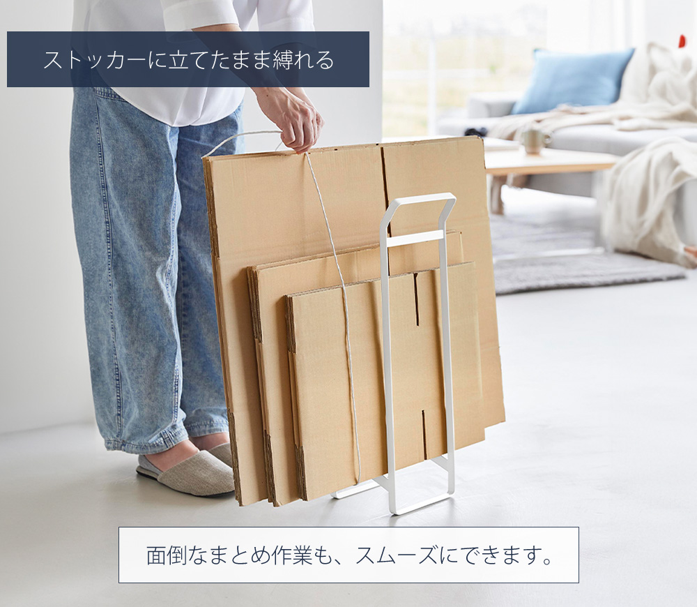 ダンボールを立てたまま縛ることができ、煩わしいまとめ作業もスムーズにできます。