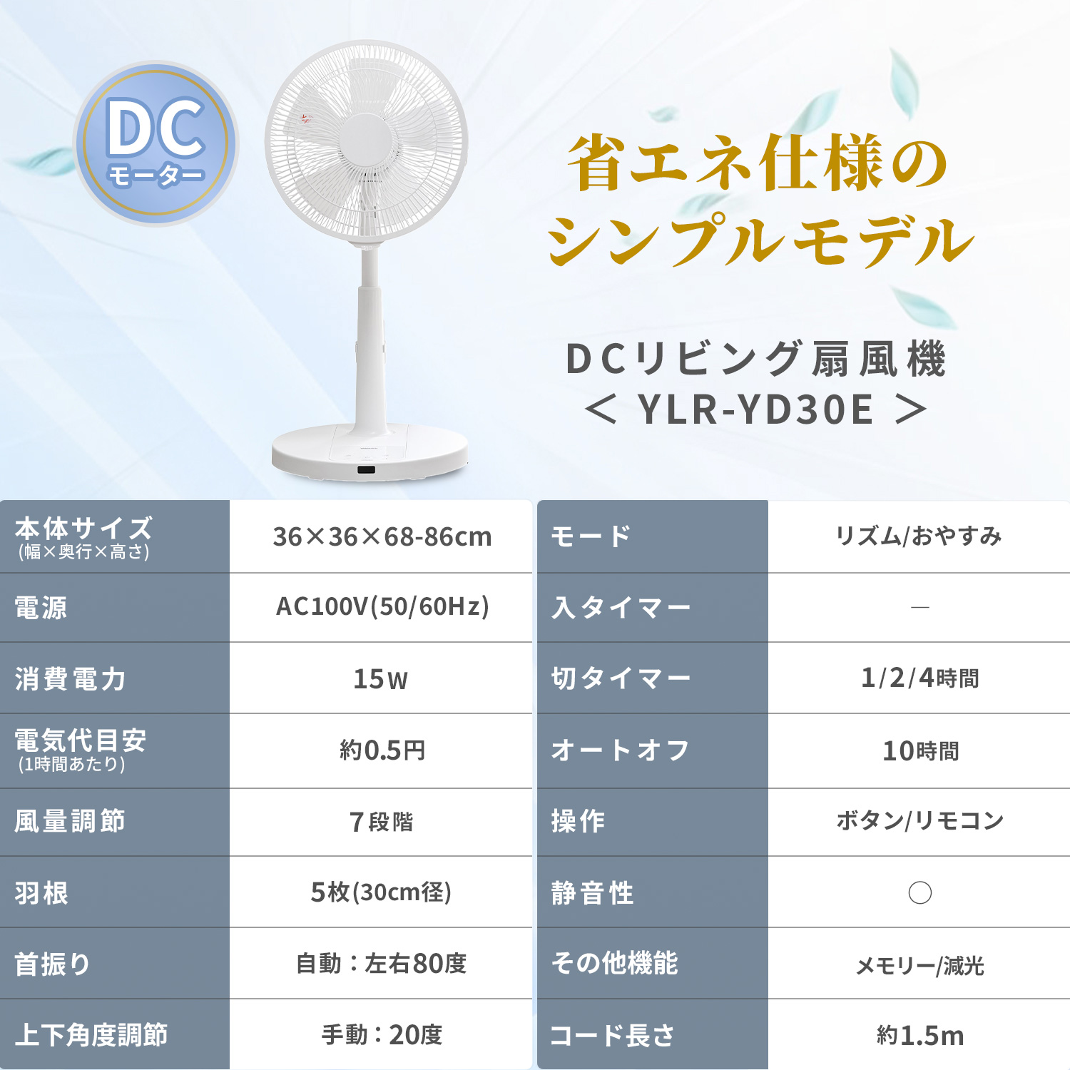 扇風機 dcモーター おしゃれ リビング扇風機 山善 風量7段階 リモコン 左右首振り 切タイマー 静音 YLR-YD30E サーキュレーター