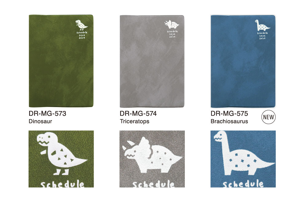 | 大人女子好みのデザインが充実している『MATOKA』の 2026年4月始まりマンスリーダイアリー。 人気シリーズ「ピエニ|PIENI」は恐竜モチーフが勢揃い! |