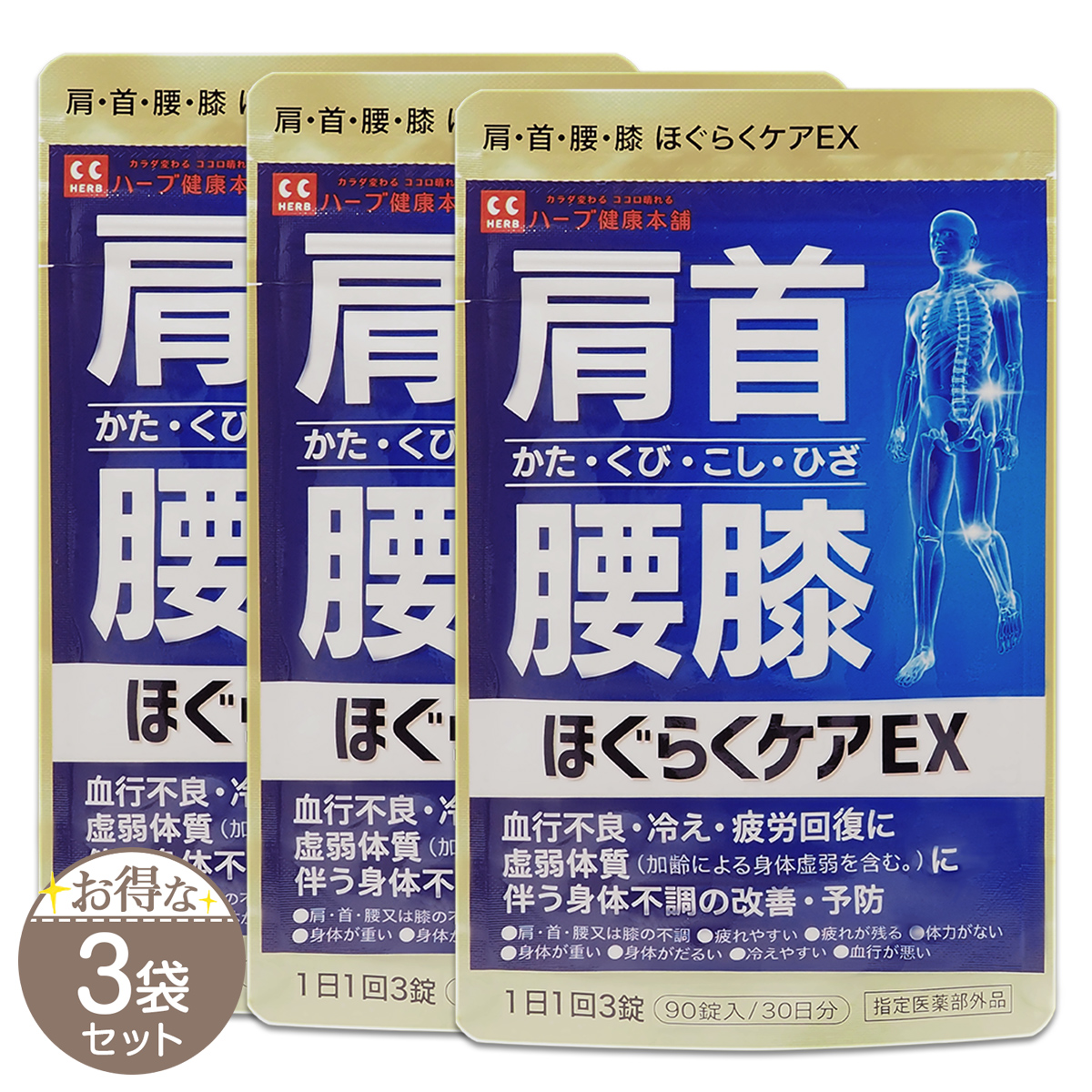 ほぐらくケアEX 90錠入 30日分 ハーブ健康本舗 サプリ サプリメント 血行促進 [指定医薬部外品] メール便送料無料SPL / ほぐらくケアEXS03-05 / HRCREX-01P