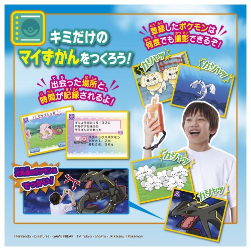 ■説明:いつでもどこでも!カシャッとシェイクでポケモン発見! スマホロトムで900匹のポケモンに出会おう!! ■「ポケモンアドベンチャー」で冒険に出発! (1)スマホロトムを持ってあたりを見まわそう!ポケモンのシルエットが現れるぞ! (2)気になるところをカメラで撮影しよう (3)スマホロトムを『シェイク』して写真を混ぜよう! (4)画面がフィールドに変化! (5)360度見まわしてポケモンを見つけよう (6)発見したらカメラで撮影して図鑑登録!....