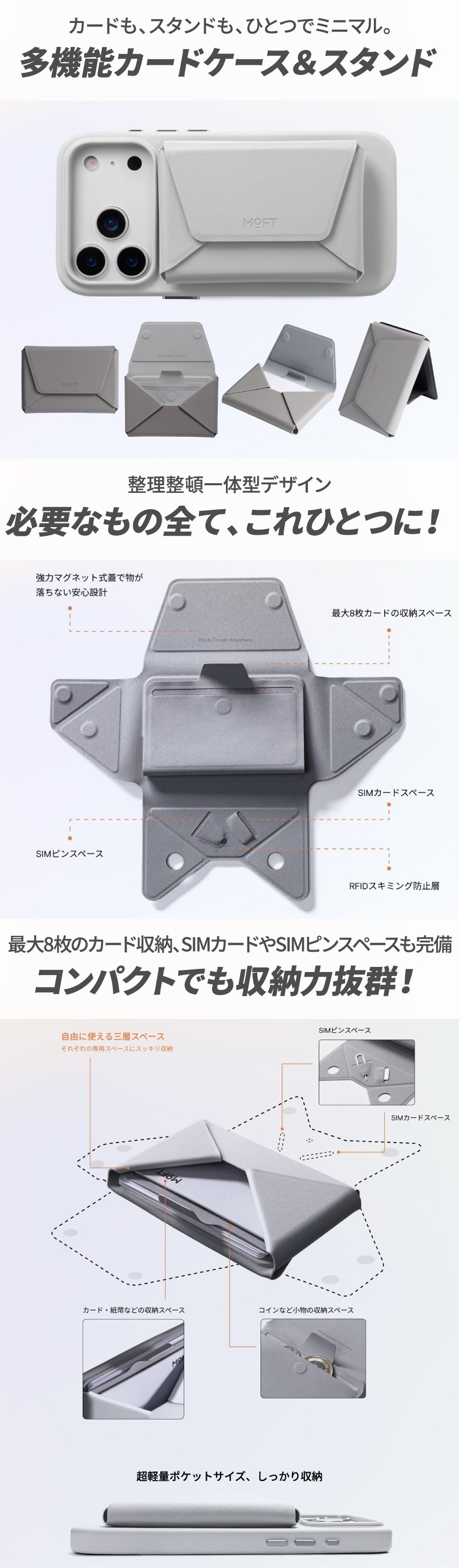 MOFT [多機能カードケース&スタンド] 送料無料 iPhone17 Air Pro Max 正規代理店 スマホリング 軽量 カードケース コインケース 財布 小物 収納 MagSafe モフト