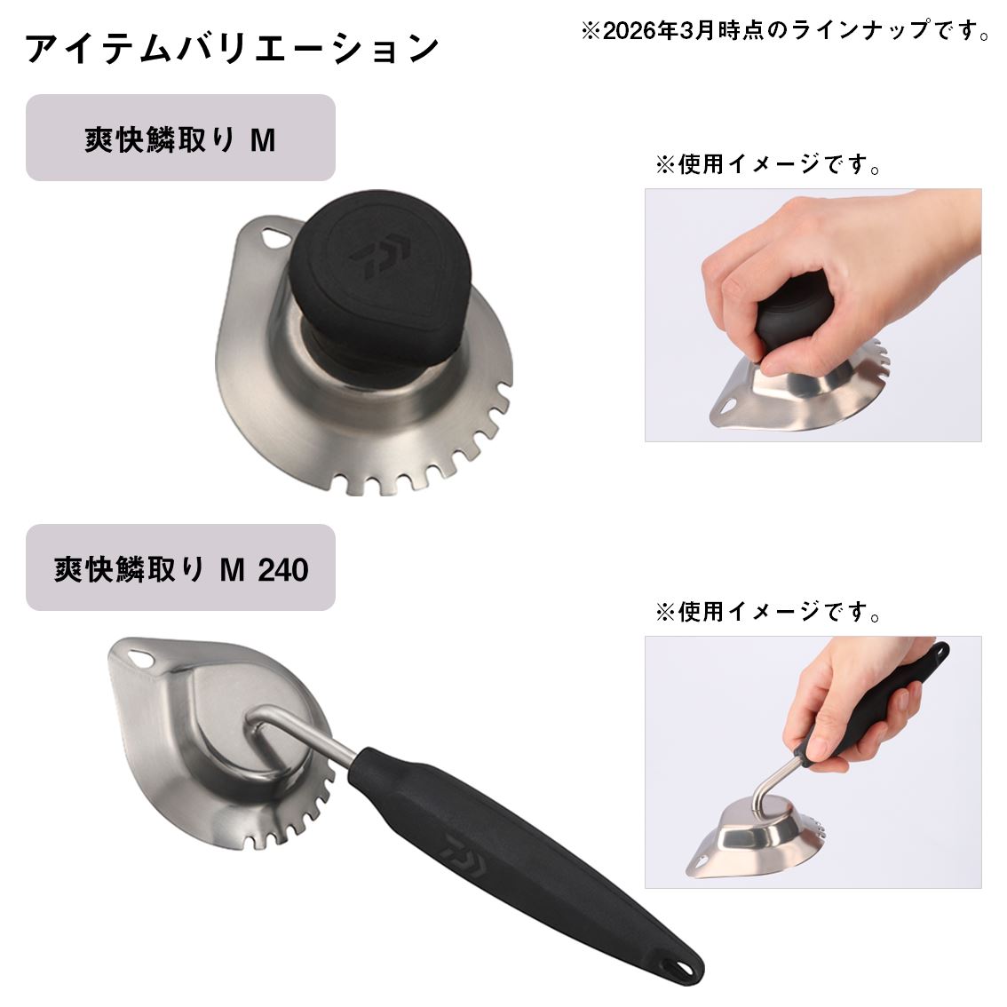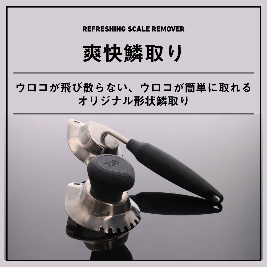 「ウロコが飛び散らない」「ウロコが簡単に取れる」をキーワードにたどり着いたダイワのオリジナル形状鱗取り
