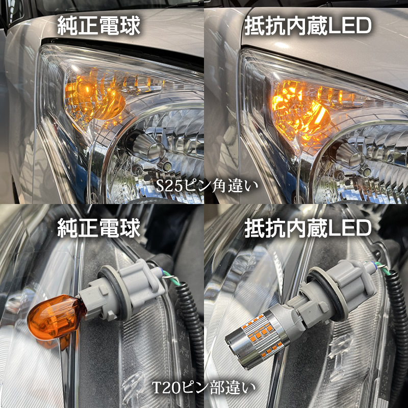 ウインカー用 抵抗内蔵LED T20ピン部違い S25ピン角違い