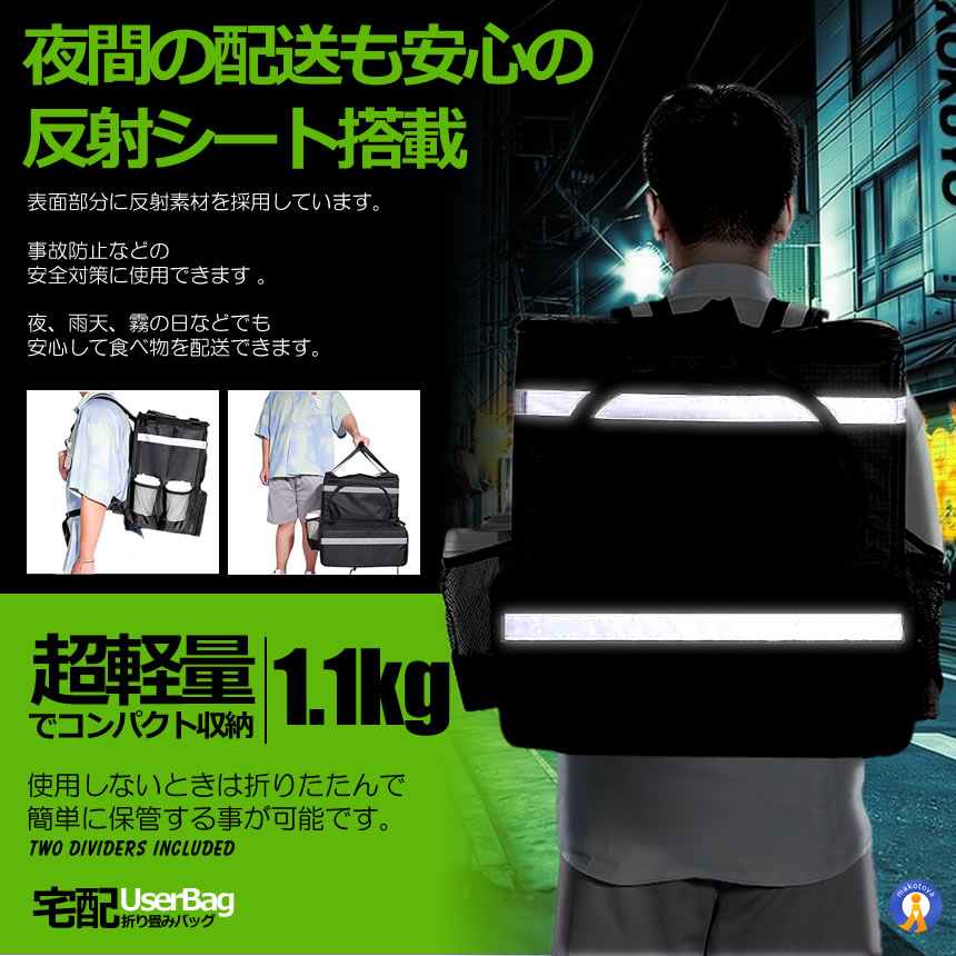 クーラーバッグ デリバリーバッグ 39L+11L拡張可能 配達バッグ リュック 宅配 デリバリー ピザポーチ 保温保冷 エコバッグ 大容量 2枚の仕切り 50LDERIBAG
