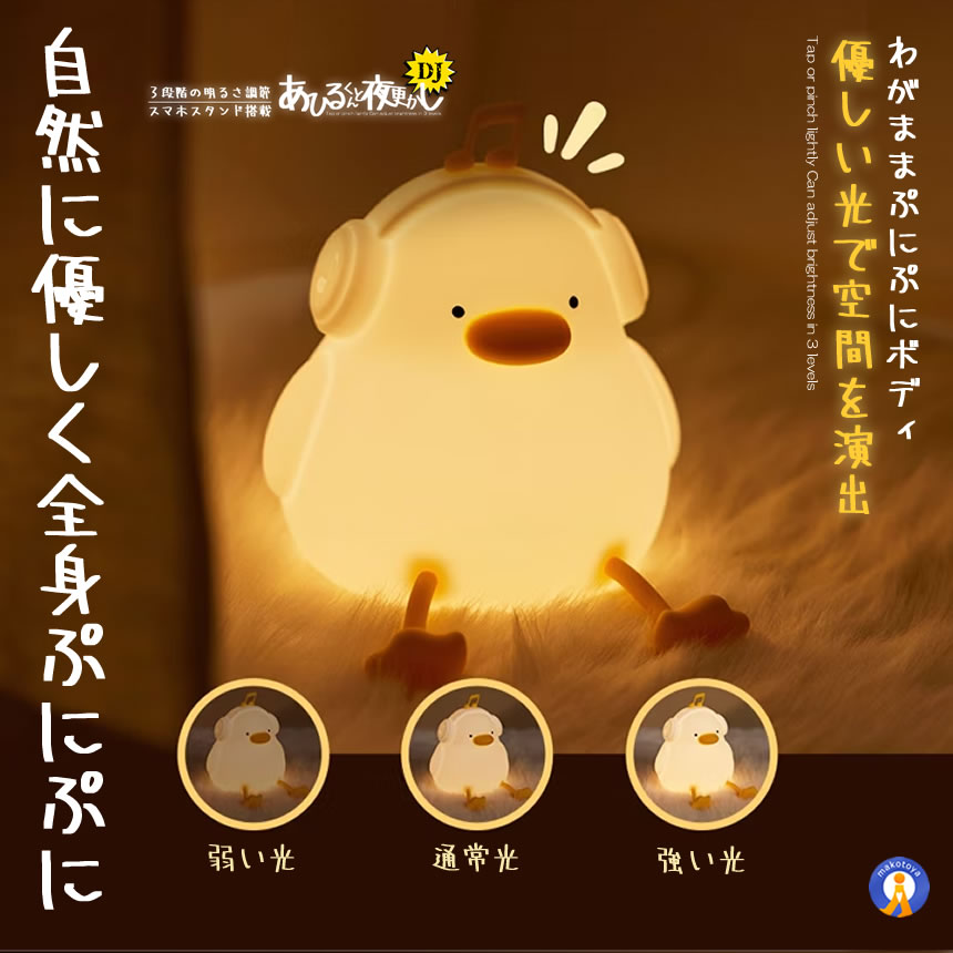 ナイトライト アヒル 照明 ランプ デスクライト 寝室 卓上 お風呂場 スマホスタンド 子供 LED 間接照明 USB充電 3段階調光 癒される 光る プレゼント FLAAHIRU