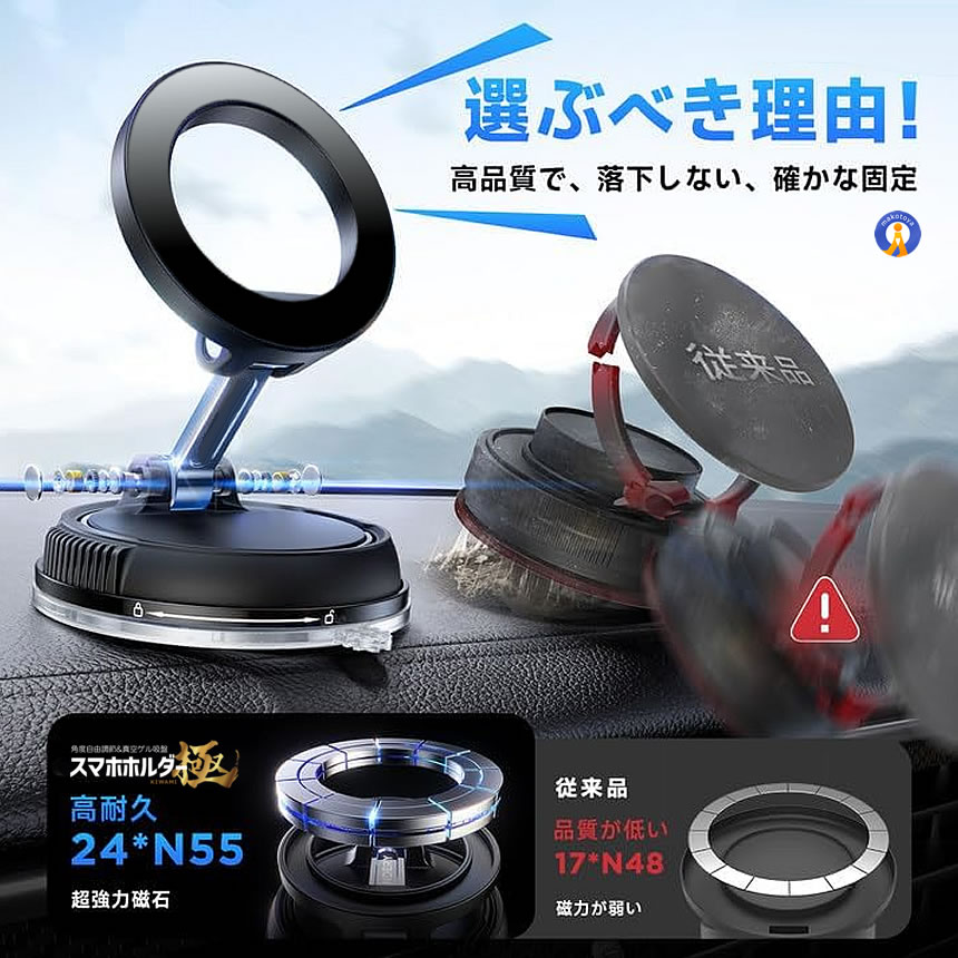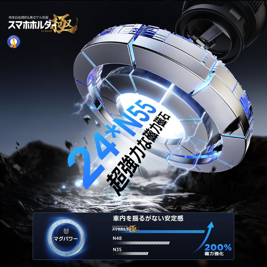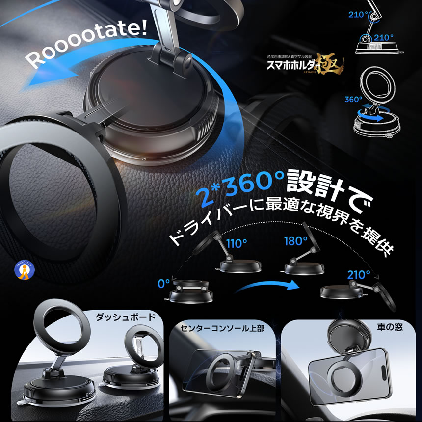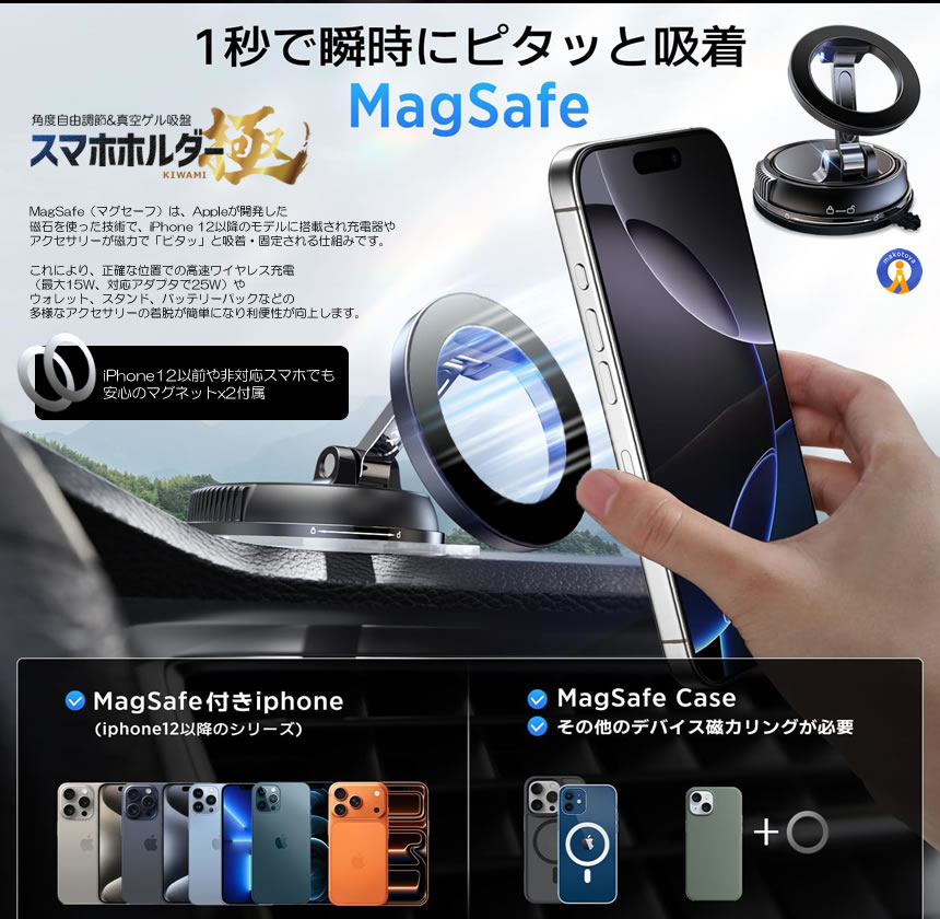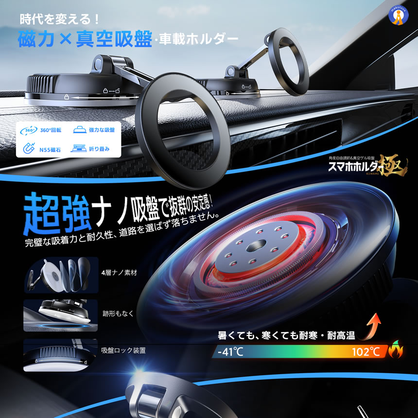 ●革新的設計!磁力+真空ゲル吸盤の車載スマホホルダー最強コンビ